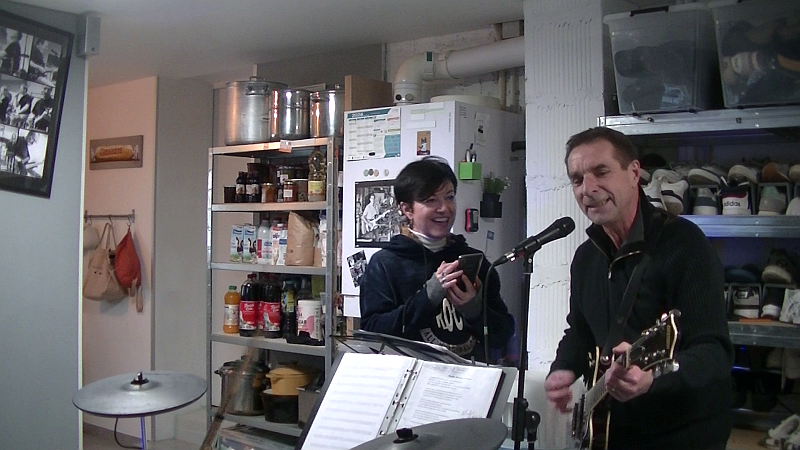Samedi 13 mars 2021 : l’après-midi est vite passée … 17h, il faut plier compte-tenu du couvre-feu. L’accent a été mis sur les nouveaux morceaux, « Sarbacane« , « I will survive » et « Argent trop cher« .